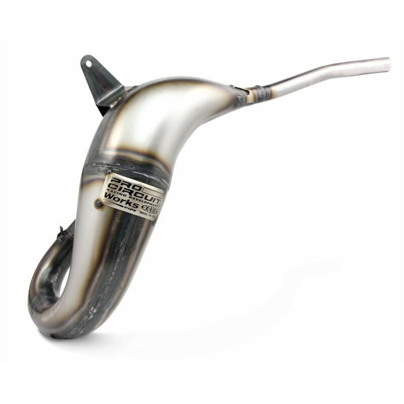 The original Pro Circuit Works Pipe offers unparalleled performance and power for every two-stroke application. Increased horsepower and torque gains will quickly be noticed across the entire rpm range. The unplated, oiled metal finish requires some maintenance, but really gives your bike that 'Works Look'.
