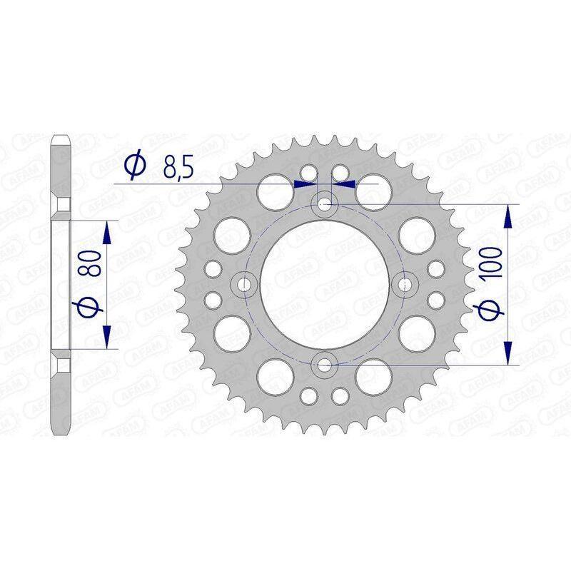 AFAM alu rear-sprockets are produced with an alloy which combines lightweight and resistance. The high-quality manufacturing process and the cutting precision made AFAM a world leader for motorcycle transmission parts.