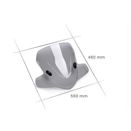 Manufactured in 3mm polycarbonate and with a smoky finish, it will show its strengh through gusty winds giving you a feeling of quality and maximum comfort on the road.