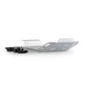 La partie inférieure de la protection est complètement plate, ce qui facilite le soulèvement de la moto de la partie inférieure dans l'atelier mécanique si nécessaire, et elle possède des trous pour garantir un bon refroidissement et évacuer l'eau, la boue ou les petites pierres accumulées.