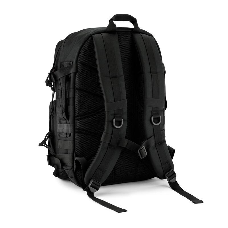 Ce sac à dos est fabriqué en polyester haute résistance avec une finition déperlante, et intègre un système MOLLE à l’avant et sur les côtés pour augmenter la capacité de portage avec des accessoires compatibles. Il offre deux compartiments avant à accès rapide et un grand compartiment principal avec des séparateurs internes, ainsi que des bretelles rembourrées et réglables pour un transport confortable.