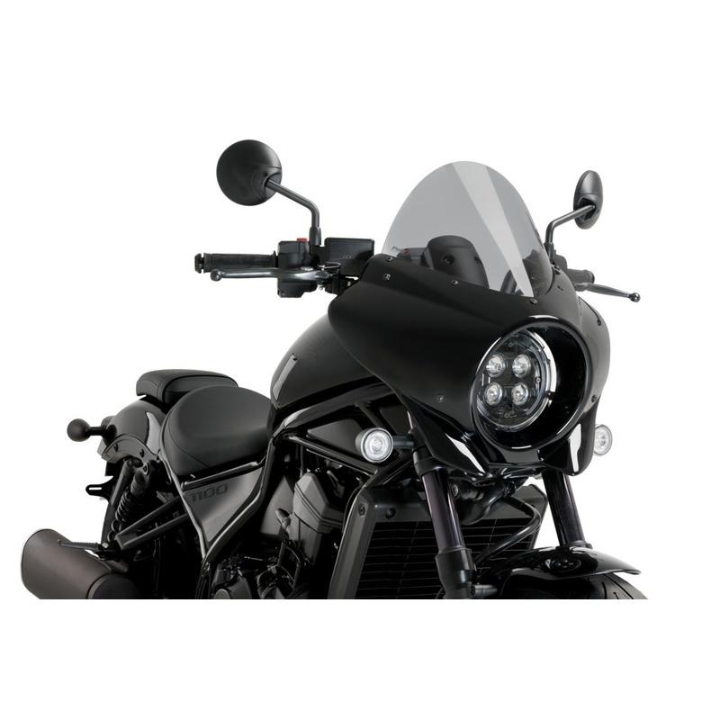 Il suo design dalle linee semplici e arrotondate si abbina perfettamente a molti modelli di moto custom e cruiser, fornendo un esclusivo look personalizzato e migliorando sensibilmente la protezione aerodinamica del pilota.